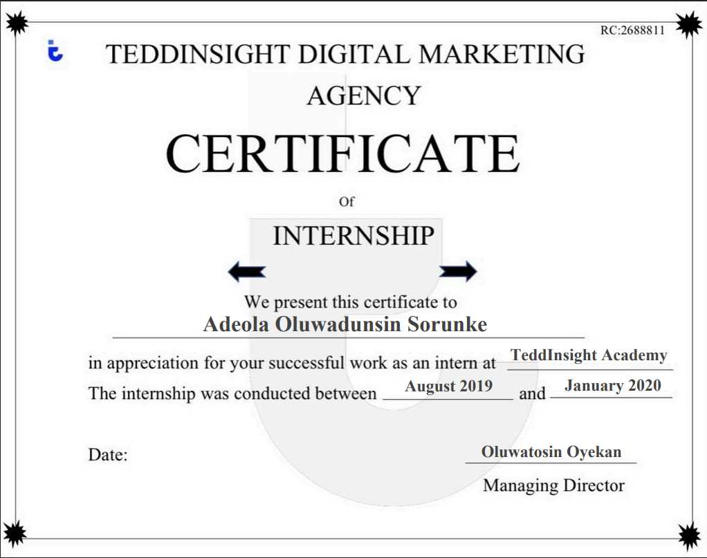 Digital Marketing Internship Certificate – TeddInsight Academy